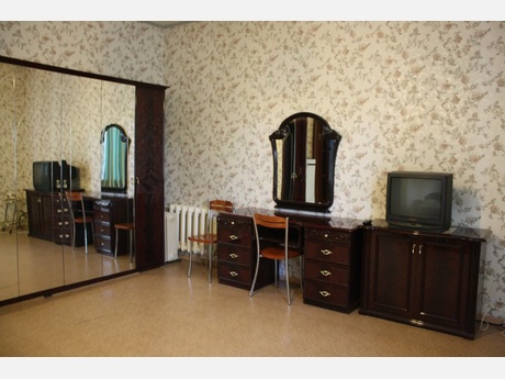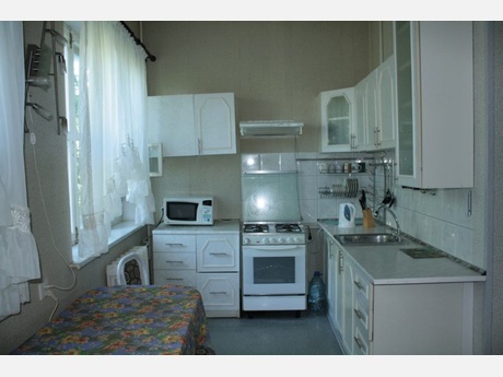 Классический ремонт, большая квартира, две комнаты раздельные, высокие потолки, двуспальная кровать, диван, дамский уголок, мебель лакированная, большая кухня с натуральным камином. Два TV, газовая колонка-автомат, микроволновая печь, стиральная машинка-автомат. Рядом охраняемая стоянка.
