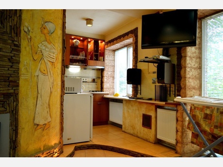 Стильная просторная двухкомнатная квартира-студия с авторским дизайном в египетском стиле. В квартире отдельная спальня, гостиная-кухня со столовой зоной и мягким угловым диваном.В квартире уникальный камин, работающий от экологически чистого и абсолютно безопасного гелевого биотоплива, которое можно приобрести пока только у нас в офисе, как у официальных представителей. Уникальный дизайн квартиры прекрасно дополняет настоящий холст на стене с изображением пустыни. В квартире есть вся бытовая техника, необходимая для комфортного проживания и приятного времяпрепровождения, интернет. Ванная комната оборудована джакузи, потолок - звёздное небо. С подробностями интерьера можно ознакомиться в виртуальном туре http://elitki.com/virtual/ot/. Квартира сдаётся почасово, посуточно и на длительный срок.