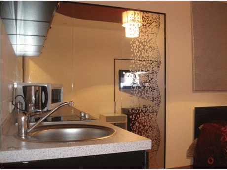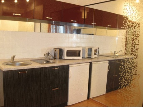 Просто и совершенно. Апартаменты-студио прекрасно подходит для деловых людей, так как расположена квартира на сутки в самом сердце города. Кухня в этой квартире является продолжением маленькой гостиной зоны жилища. Светлые обои и зеркала визуально увеличивают пространство комнаты. Спальная зона – двуспальная кровать с ортопедическим матрацем. Надеемся, Вам здесь понравится, и Вы приедете еще не один раз.